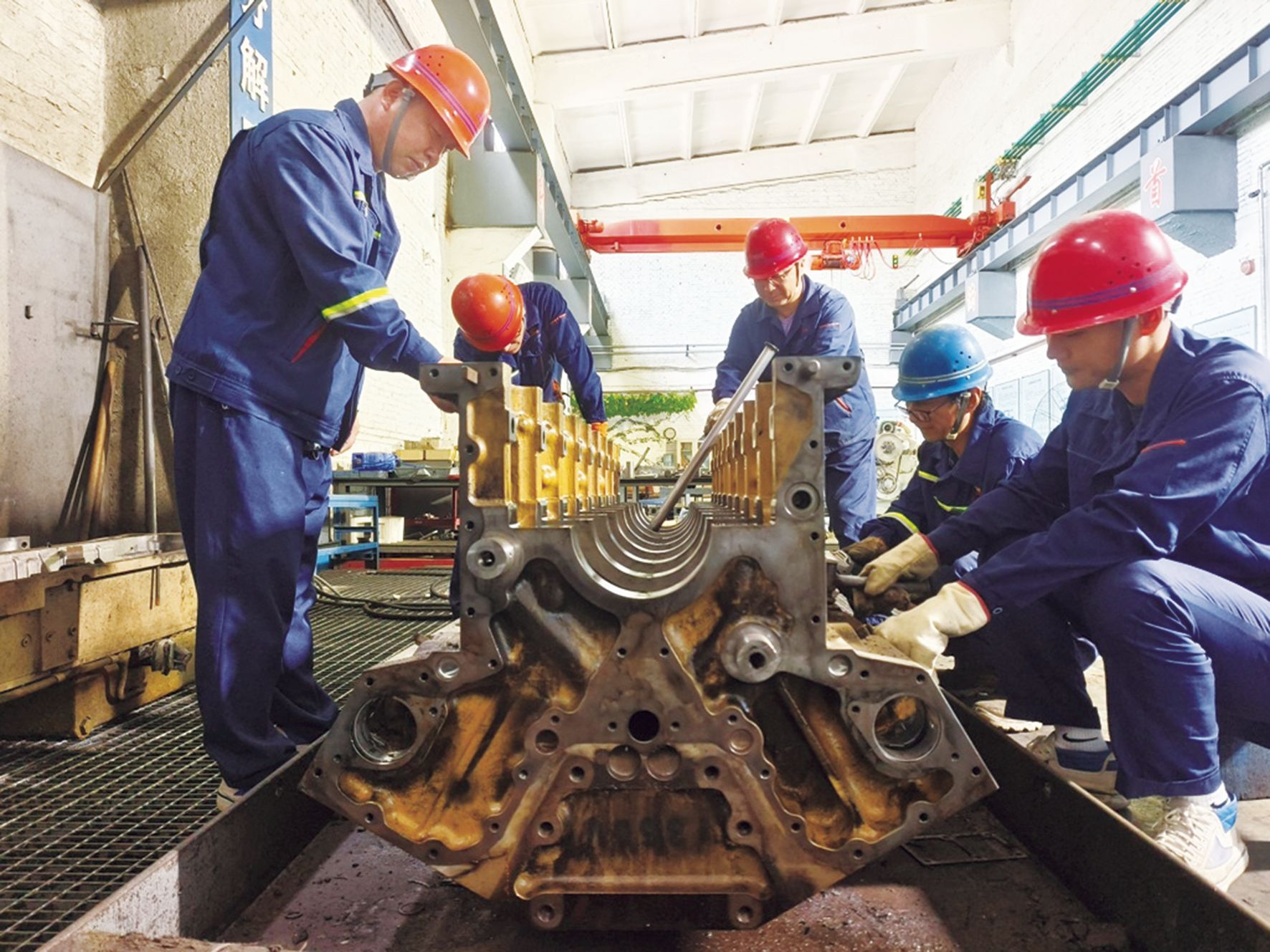 | 班组技术骨干正在修理发动机。 |