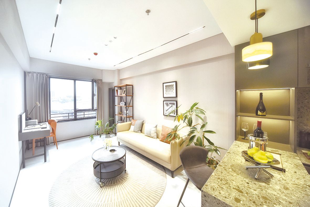 随后,记者跟随工作人员来到了融石广场项目南侧6、7号楼的人才配套公寓。当前,两栋公寓外立面已基本完工,内部正在加紧精装修,样板间已迎来多组意向入住用户前来参观。这里共设有507套精装公寓,6号楼将打造为提供336套房的白领公寓;7号楼房间总数为171套,为面积更大一些、可短租的服务式公寓,预计明年春季投入运营。步入样板间,合理且精致的空间布局映入眼帘,房间整体装修风格简约时尚,配备智能化家电设备,部分户型还设有书房、保姆间等功能型房间。