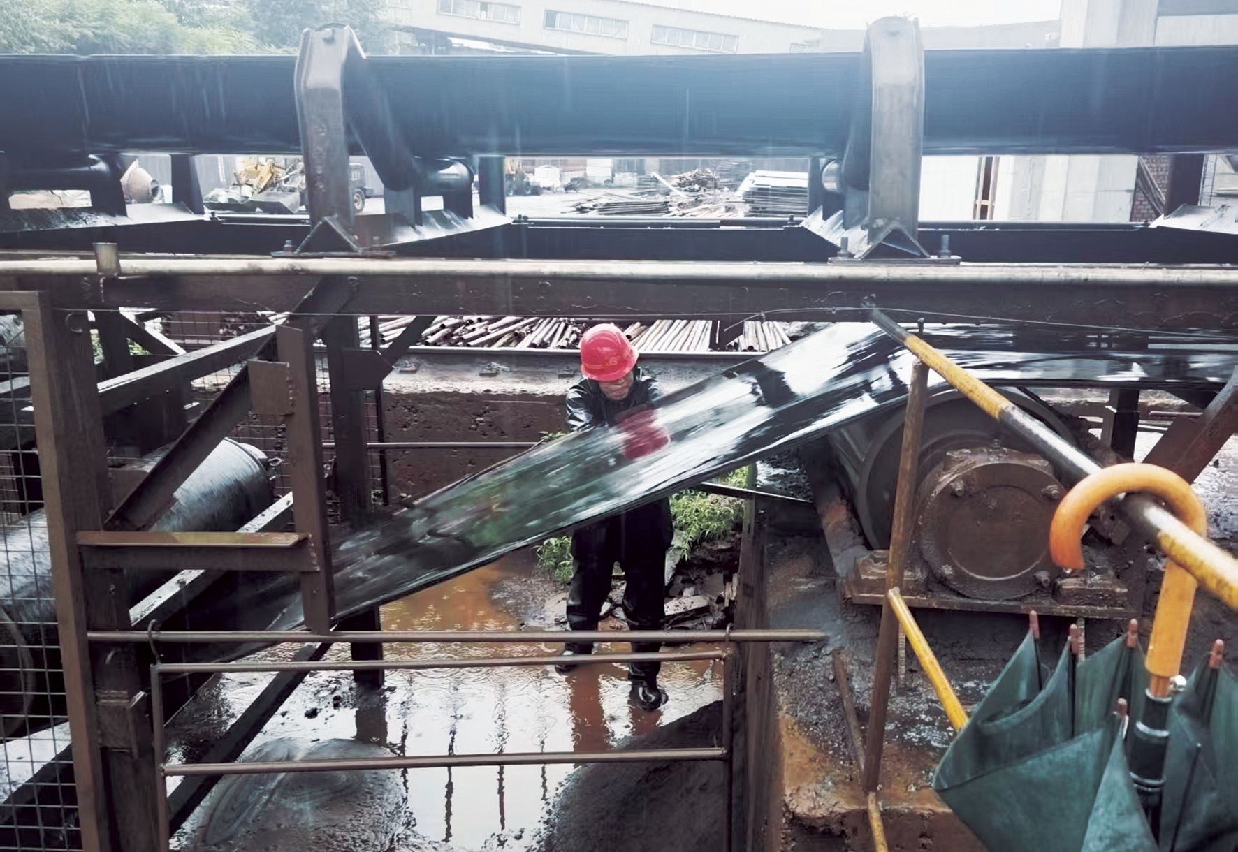 炼铁事业部料场作业区职工顶风冒雨坚守岗位。他们深知料场设备的正常运转对生产的重要性,冒雨清理堆取料机中心斗反射板、斗轮粘料,清除室外大皮带增面轮下堆积料,确保了设备高效运转。此外,他们还加强了料堆苫盖围堵,对苫盖布进行全面检查,加固松动部位,提前做好防护措施,确保生产原燃料供应“不断线”。