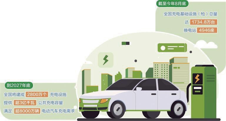 政策发力的背后,是新能源汽车市场需求强劲的现状。公安部数据显示,截至今年6月底,全国新能源汽车保有量达3689万辆,占汽车总量的10.27%。与之配套的充电基础设施建设也取得显著成效,截至今年8月底,全国充电基础设施(枪)总量达1734.8万台、换电站4946座,已建成全球规模最大、覆盖最广、类型最全的充电服务网络。“近几年,公司充电桩出货量增长非常快,今年预计突破百万台。”科大智能(合肥)科技有限公司董事长兼总经理何刚说。