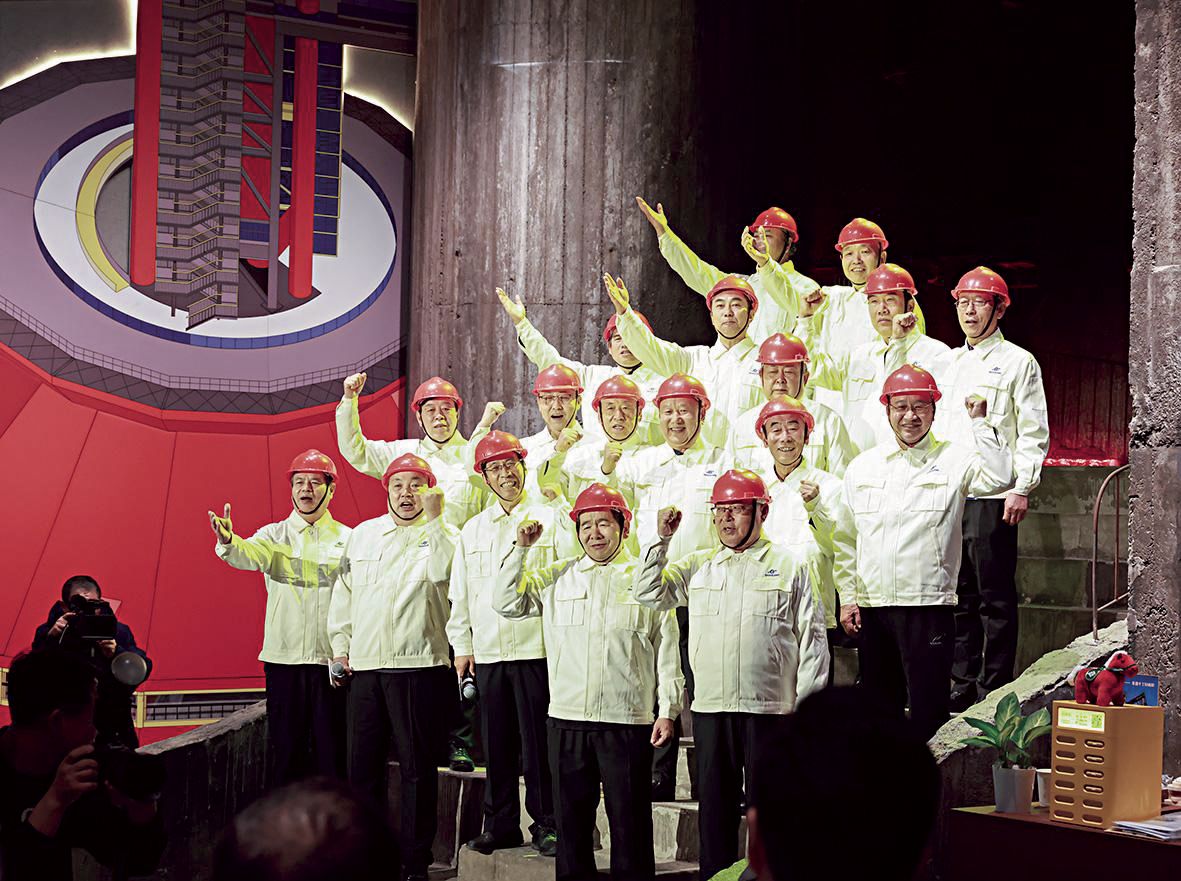 8位嘉宾手持“数字钢钎”,共同“点燃”炉芯——光影流转,“数智之焰”在高炉内部跃动升腾……