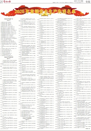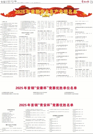 2025年首钢安全生产先进名单